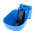 Bebedouro para animais com enchimento automático por sistema de alavanca que enche automaticamente o recipiente quando o animal pressiona o mecanismo.