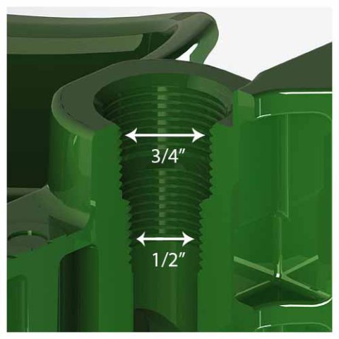 O design inteligente das conexões de entrada de água K50 as torna compatíveis com instalações de canalização de 1/2" e 3/4" polegadas.