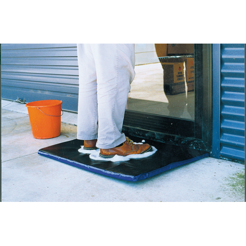 Pedilúvio para desinfecção de calçados em formato de tapete confortável e de alta resistência, fabricado inteiramente em Espanha.